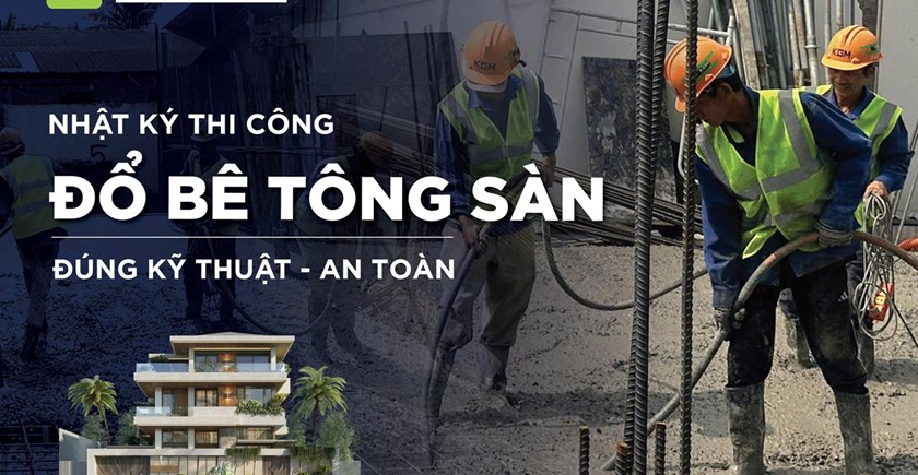 KGM Vietnam tiếp tục cập nhật nhật ký thi công công trình Green Villa, trong đó hạng mục đổ bê tông sàn được triển khai theo đúng quy trình kỹ thuật, đảm bảo an toàn và chất lượng kết cấu cho toàn bộ công trình.